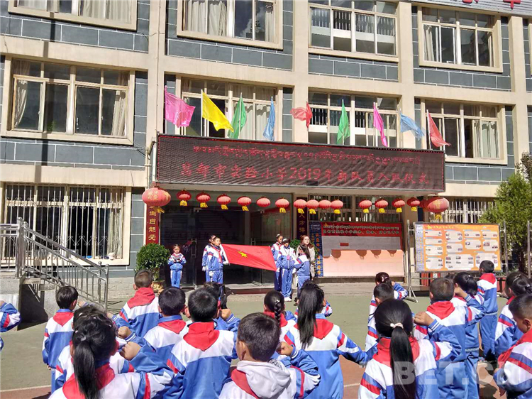 图为昌都市实验小学在学校操场开展新少先队员入队仪式