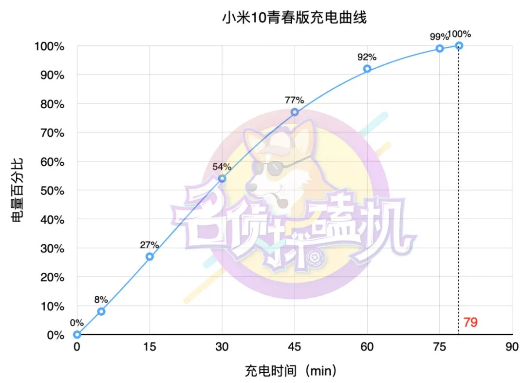 小米10青春版内嵌了一块4160mAh充电电池,电池充电层面,手机上任意标准配置了22.5W的充电插头。应用正品电池充电器械为手机电池充电,评测三十分钟充电电池54%,0-100%电池充电共用时79分鐘。