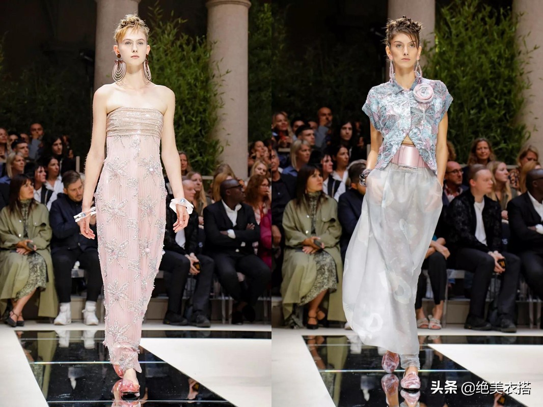这场大型秀的一些细节也非常好,薄纱云朵,串珠的花朵展现出女性的自信和自然的时尚力量。