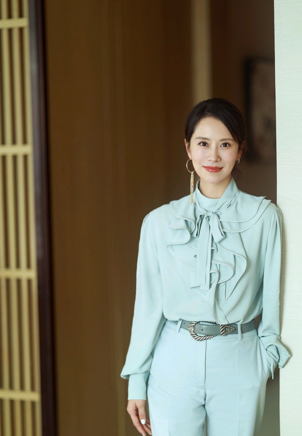 海清就很会穿,身穿淡蓝色衬衫搭配同色系西裤,精致干练又时髦,而且还很清新,我们一起来看一下。